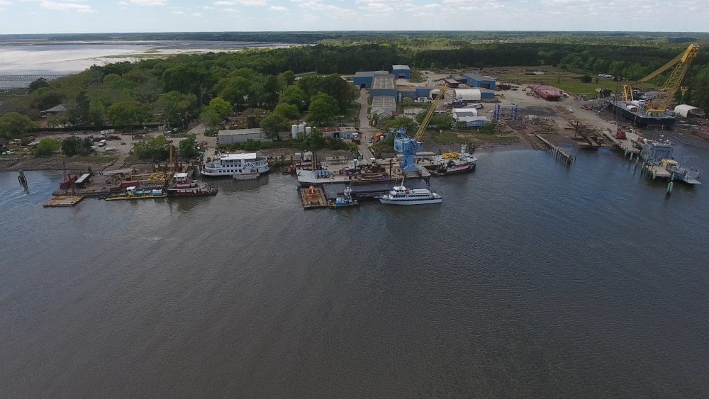 - 500 ton marine railway for vessels up to 140′ long x 45′ wide